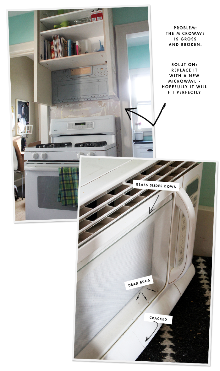 I’ve found myself a little stumped when it comes to some bigger problems. We have/had a microwave that was in rough shape. It was an above the oven mounted sort of microwave, and ever since we’ve lived here the front glass has fallen down in it’s mounting, leaving a gap at the top between the inner and outer glass. Bugs go down there, they think it’s cool, and then they die. Grease and dust goes down there and I can’t reach it with a towel. It is embarrassing and gross, and there has been nothing I can do about it. The entire microwave is covered in grease, back in the vents of the exhaust. It’s also unreachable to clean but visible. It is the worst.