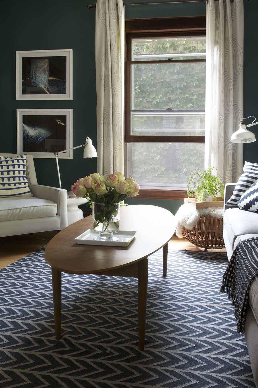 I’ve really been digging the look of my living room lately. In the summertime we get to enjoy this lush backdrop of grape vines through the windows that are growing on my neighbors house. It’s so pretty, and I miss it so much when it gets all dumb and decides to not be green in the winter. Besides the changing of the seasons and what not, there has been one big change in the living room that I was too embarrassed to share with you earlier. I’m still not actually sharing photos of it because it was ugly and gross, just take my word for it.