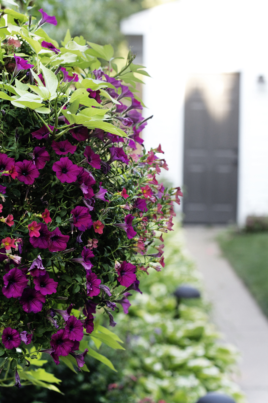 Because of the photoshoot earlier in July, I had the luxury of planting quite a few different types of annuals in the gardens to add some color where it was lacking. One of my favorite combinations is right on the corner of the garage, and consists of two of these light pink Kangaroo Paw and one Globe Amaranth. I purchased the plants right at the end of annual season and got everything 50% off. I’ll have to remember that for next year, because I really like the look of these two right here in this spot.
