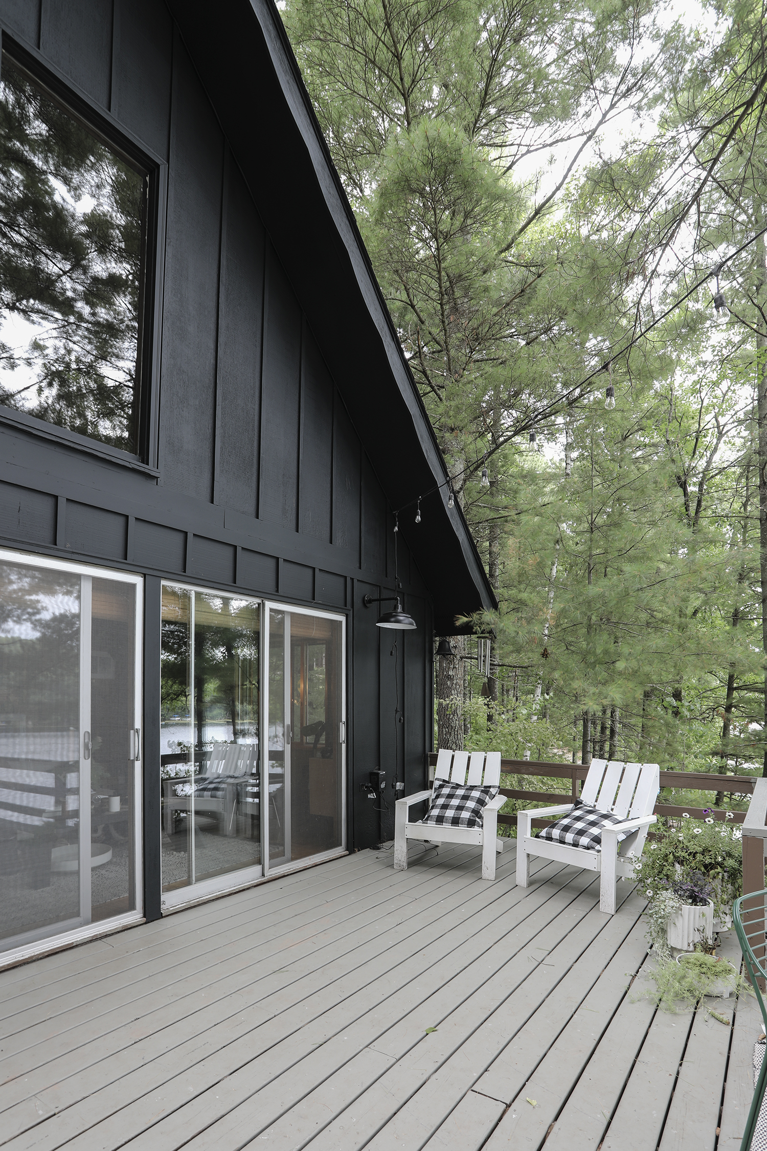 Love your blog and style! I found you when searching for dark exteriors on Pinterest. Our cabin is Deep Forest by Cabott (very similar to your Dark Knight) and was looking for accent colors. What color are you using on your deck? Thanks so much!